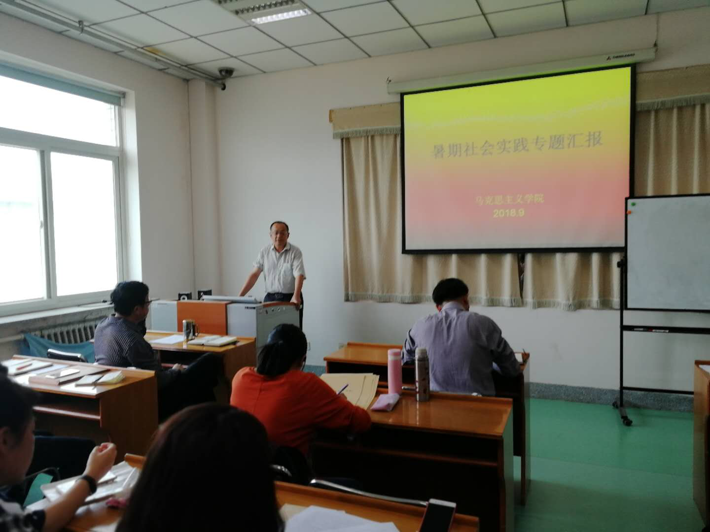 2018年9月19日下午,MG冰球突破官网全体教师于五号楼426举行了暑期社会实践专题汇报会。本次汇报会主要关于MG冰球突破官网部分教师暑期考察学习山西大寨集体经济的总结回顾,会议由MG冰球突破官网院长曹庆新主持,徐锋和张敬军两位老师汇报。