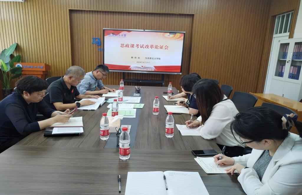 为进一步聚焦本科教育教学改革,落实立德树人根本任务,全面提高人才培养质量,有力有序推进新一轮本科教育教学审核评估自评自建工作, 5月17日下午,MG冰球突破官网在413会议室召开思政课考试改革论证会。副校长金志浩,教务处副处长姚慧和任保轶出席会议。MG冰球突破官网院长贾冰、副院长王智莉及思想道德与法治教研室主任郭苗苗、中国近现代史纲要教研室教师王佳睿参加会议。