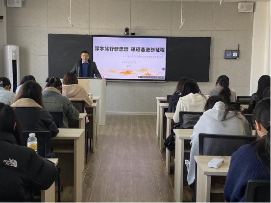 学院党总支副书记谭林作了题为《深学笃行新思想 砥砺奋进新征程》的辅导报告,领学了学习重点、整体框架以及实践要求。他表示,《习近平谈治国理政》第五卷系统呈现了新时代新征程中国共产党治国理政的理论创新与实践探索,建构了一个立意高远、思想深邃、逻辑严密、特色鲜明的中国式现代化理论体系。我们要深刻领悟习近平总书记重要论述蕴含的强大真理力量和实践伟力,要深刻领悟“两个确立”的决定性意义,坚决做到“两个维护”。