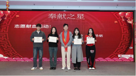 谭林、郭苗苗、刘席威、莫修良为荣获学习之星、科研之星、奉献之星荣誉称号的学生颁发证书,表彰她们在学习、科研、社会服务等方面取得的优异成绩和作出的突出贡献。